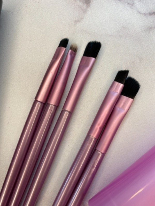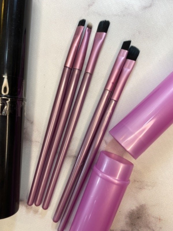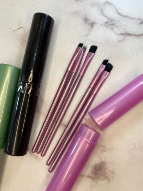 Set de 5 brochas para ojos en tubo. Disponible en verde, lila y rosa