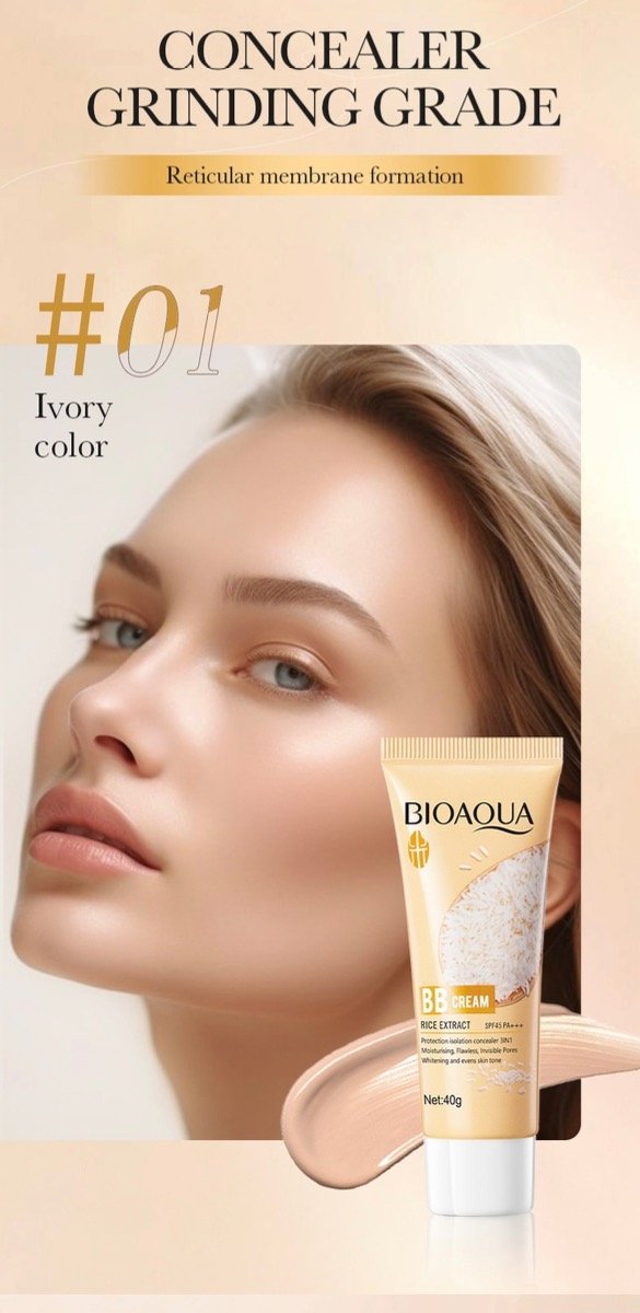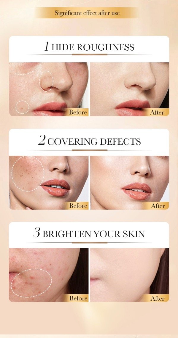 Corrige el tono de la piel, contiene protector solar, hidrata, disminuye apariencia de poros, aclara y unifica el tono